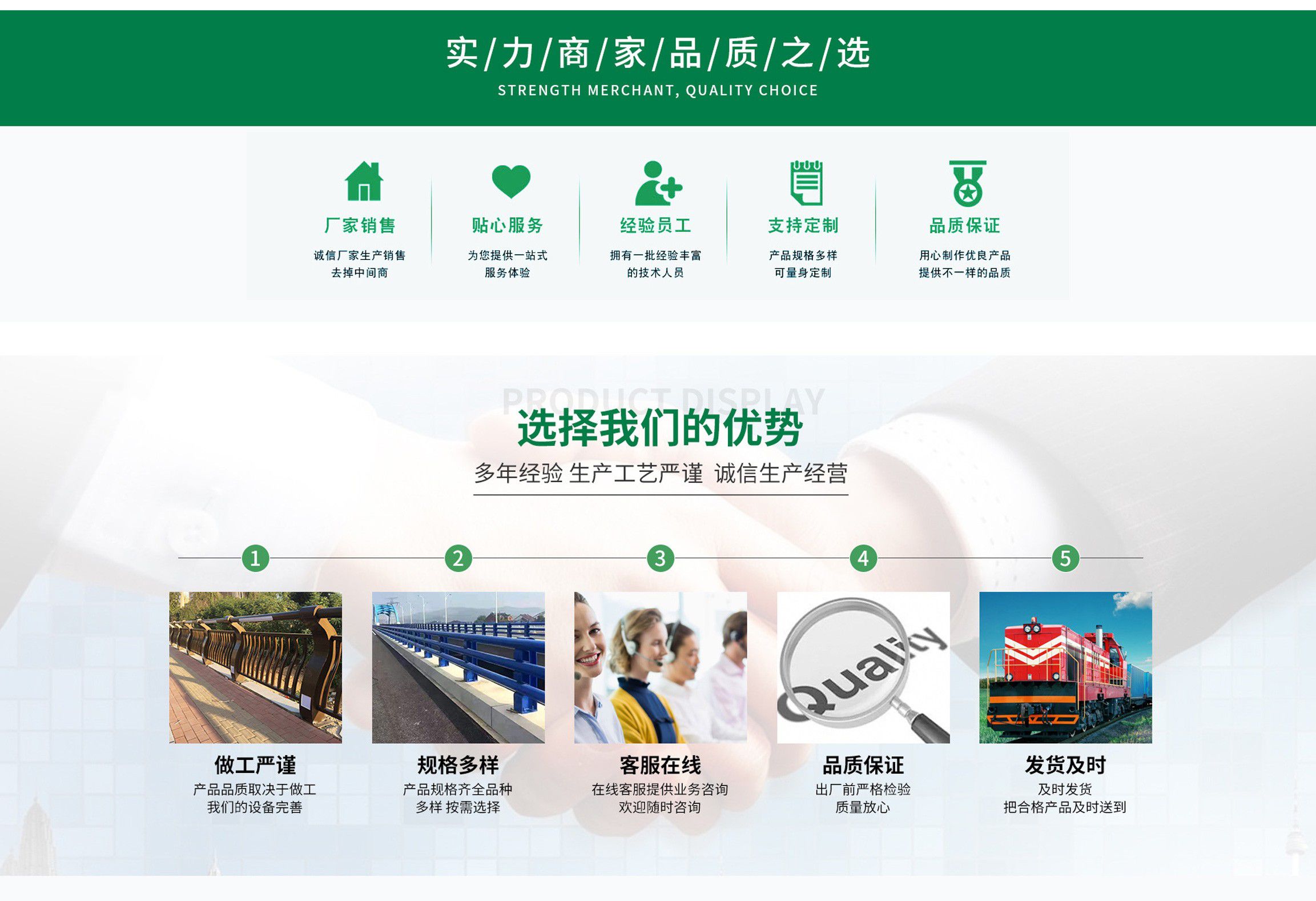 山東崇發(fā)金屬制品有限公司位于“江北水城“”之稱的聊城,地理位置優(yōu)越,交通方便。公司占地面積50000平方米,建有標準化廠房及辦公樓等配套設(shè)施,建筑面積30000平方米?! 」臼且患以O(shè)計、銷售、安裝為一體的護欄工程企業(yè),本公司主要生產(chǎn)各種燈光護欄,防撞護欄,橋梁護欄,鋁合金護欄,不銹鋼復(fù)合管護欄,河道護欄等。公司擁有先進的全自動激光切割設(shè)備和機器人焊接設(shè)備,能夠保證護欄產(chǎn)品的精度和表面光潔度?! 」緝?yōu)勢一、專業(yè)性強1、設(shè)計、提供和安裝各種護欄工程。擁有護欄設(shè)計、銷售與安裝為一體的完整體系?! ?、應(yīng)用領(lǐng)域:防撞護欄、橋梁護欄、河道護欄、燈光護欄、道路護欄等?! 《?、價格優(yōu)勢公司擁有獨立的生產(chǎn)車間,無論管材還是立柱鋼板及表面處理都可在本公司內(nèi)自行加工完成,減少中間環(huán)節(jié),給客戶提供合理的價格,優(yōu)質(zhì)的產(chǎn)品?! ∥覀儗⑹冀K堅持“開拓國際市場,信譽就是效益”的經(jīng)營理念,憑借一批思想統(tǒng)一、團結(jié)拼搏、業(yè)務(wù)熟練、對客戶高度負責的團隊力量,與廣大客戶攜手共進,合作雙贏,一起迎接明天的輝煌!...